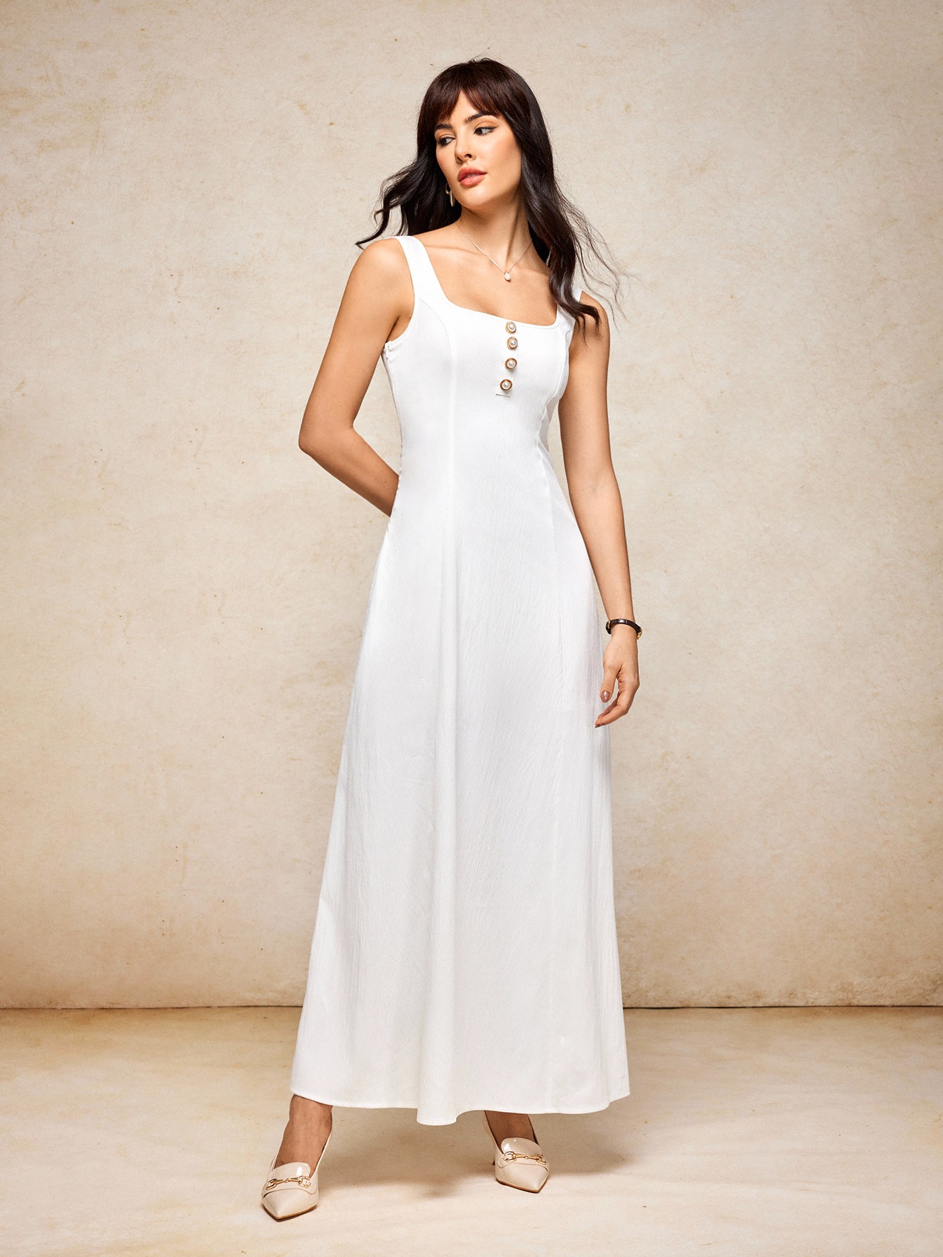 - Midi length for a polished, elongating line